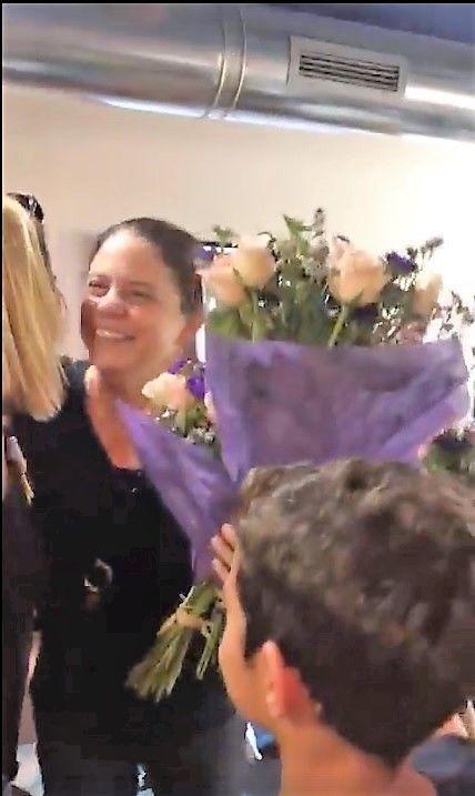 החליטו להפתיעה בישיבת ההנהלה של בית הספר והעניקו לה זר פרחים ענק וכתבו לה