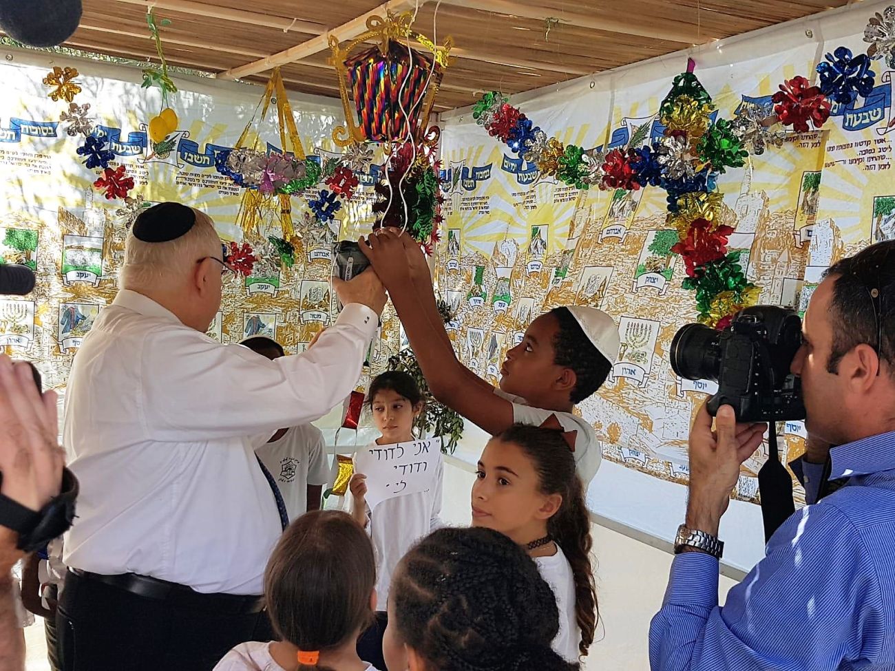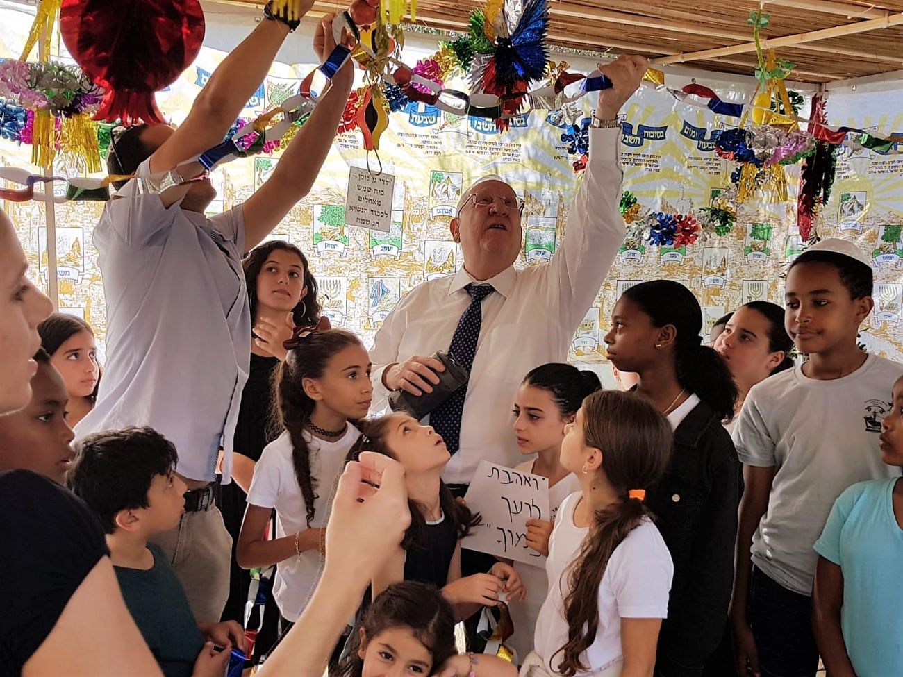 נשיא המדינה הזמין את 4 תלמידי יבניאלי אושר ושלו גטהון, עדן פולבנוב ושירה חברי לסייע לו לקשט את סוכת הנשיא בירושלים