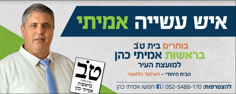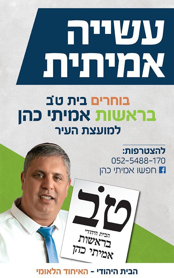 "בסוף, יום הבחירות זה הרגל המסיימת. אני באמת רוצה לומר, זכותה של רחובות שכוח האחדות נוצר פה. יש לאמיתי את הזכות להיות הכתפיים המאחדות בין הבית היהודי לאיחוד הלאומי. אז בעזרת ה' נציגות הבית היהודי ברחובות תתרחב, כי ירחיב ה' לנו ויגדיל כח הבית ברחובות. גמר חתימה טובה".