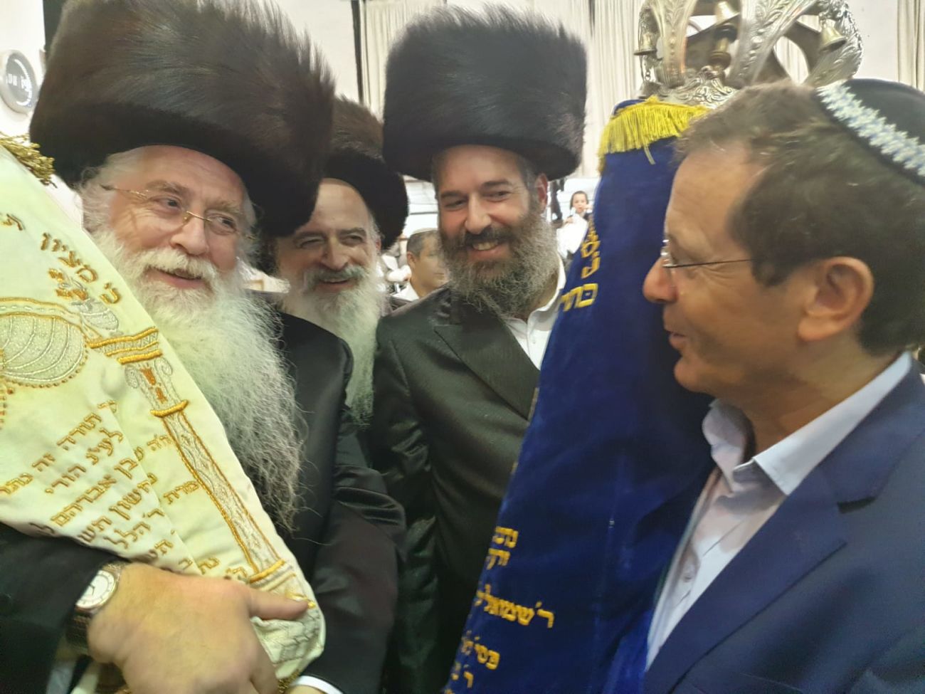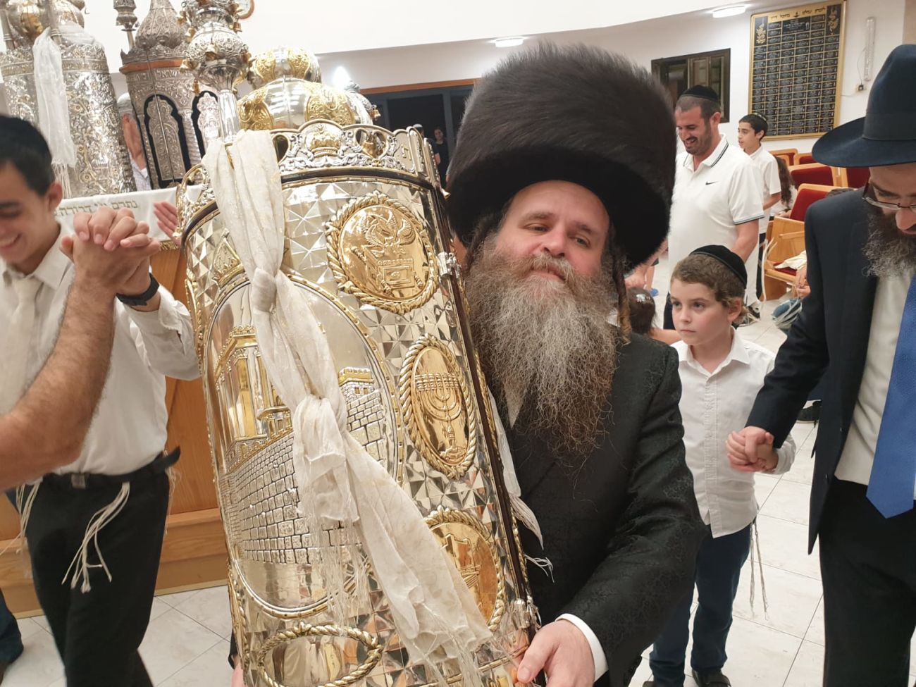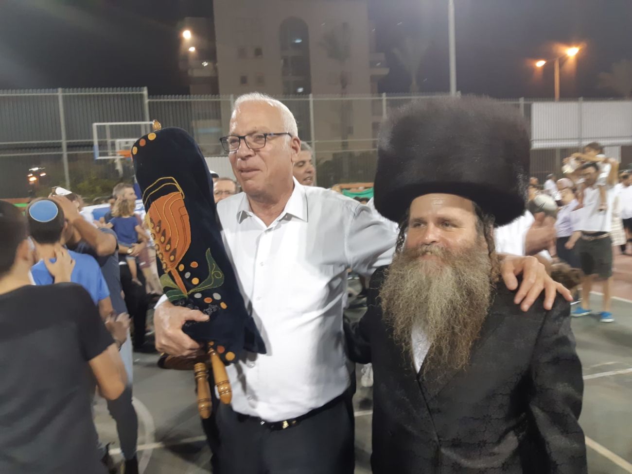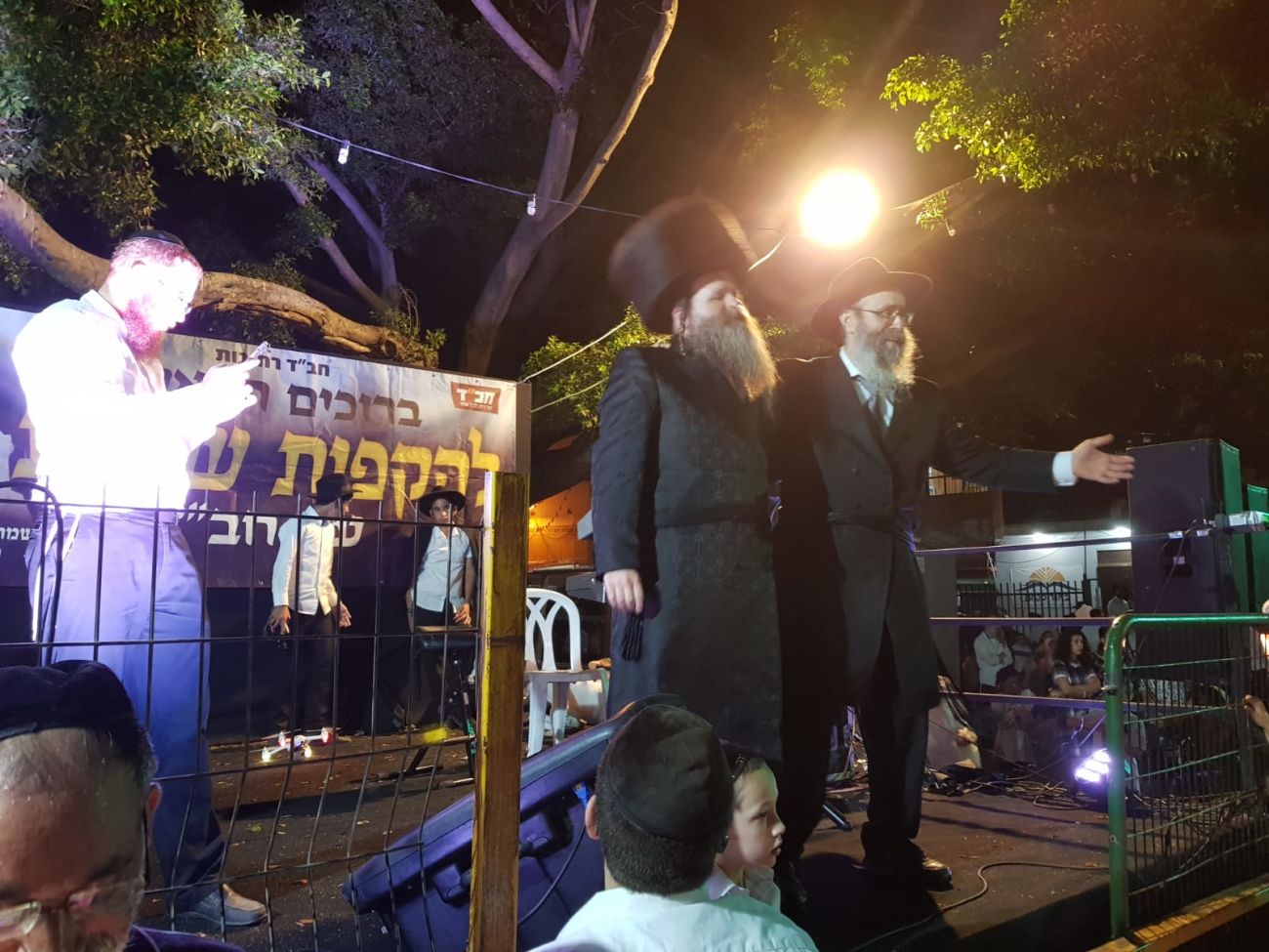 חגיגות שמחת תורה בחסידות קרעטשניף בהשתתפות יו"ר הסוכנות היהודית יצחק בוז'י הרצוג, סגן שר החינוך מאיר פרוש ראש העיר רחמים מלול והמון אורחים