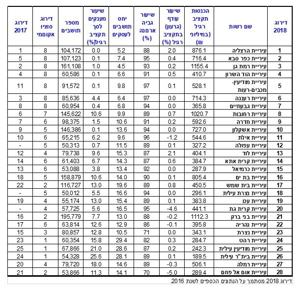 דירוג 28 העיריות הבינוניות בישראל המונות 50,000 - 200,000 תושבים