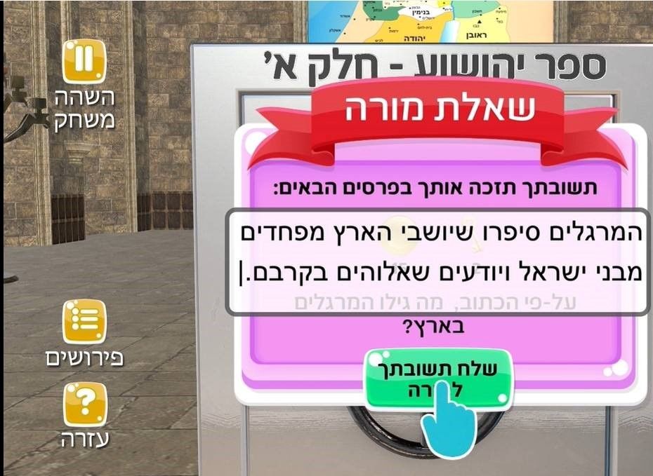 מדובר בלמידת תנ"ך בדרך של משימות, חוויה ומשחק. הפיילוט נוסה בהצלחה בעידוד עיריית רחובות והוא מצוי כעת בשלב הפיתוח, באמצעות חוויית השימוש של תלמידי שפרינצק. זאת על מנת שניתן יהיה ליישמו גם בבתי ספר נוספים ובערים נוספות.