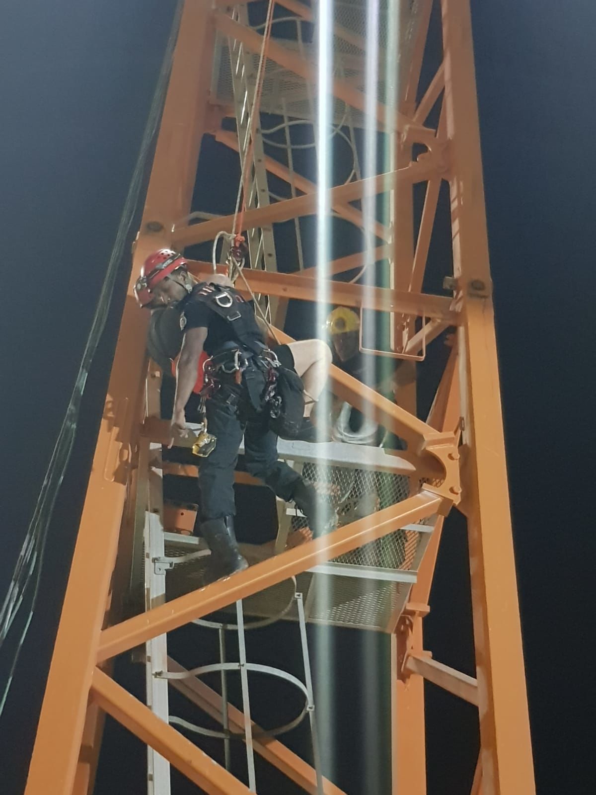 יחידת החילוצים של תחנת כיבוי אש רחובות הוזעקה לבאר יעקב כדי לחלץ אדם ממנוף בגובה 60 מטר.