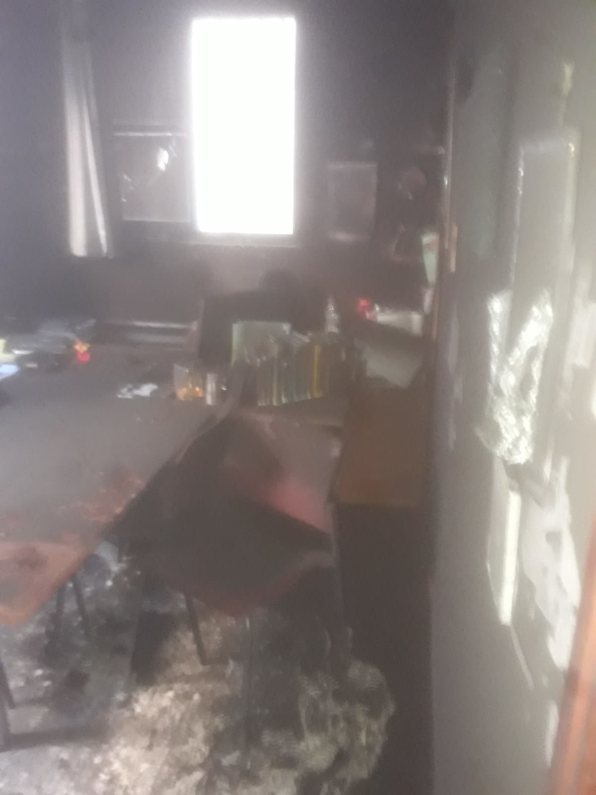 מדובר בנזק נקודתי בחדר המנהלת בחטיבת הביניים, ככל הנראה כתוצאה מקצר במזגן המטופל כעת.