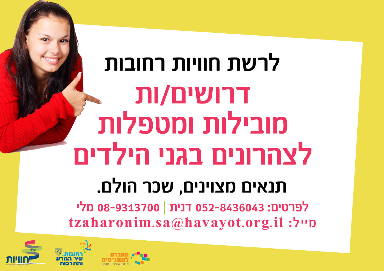 לרשת חוויות דרושים/ות מובילות ומטפלות לצהרונים בגני הילדים.
