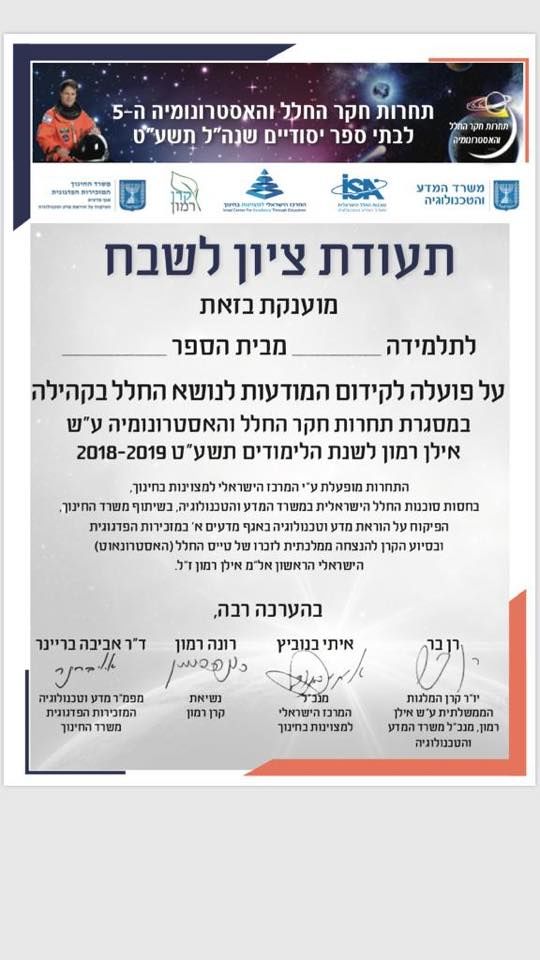 בדרך לחצי הגמר? בית ספר פרחי המדע ברחובות העפיל לשלב השלישי באולימפיאדת החלל ע"ש אילן רמון ז"ל