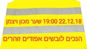 אורחשימו לב המקום והשעה שונו. הנכים לובשים אפודים צהובים עם חברים ברחובות ליד שער מכון ויצמן למדע. 22.12.18 בשעה 19:0021.12.18 10:35 תגובה