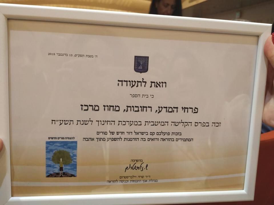 משרד החינוך העניק לבית ספר פרחי המדע ברחובות פרס 5000 ש"ח על פעולותיו לקליטת מורים חדשים