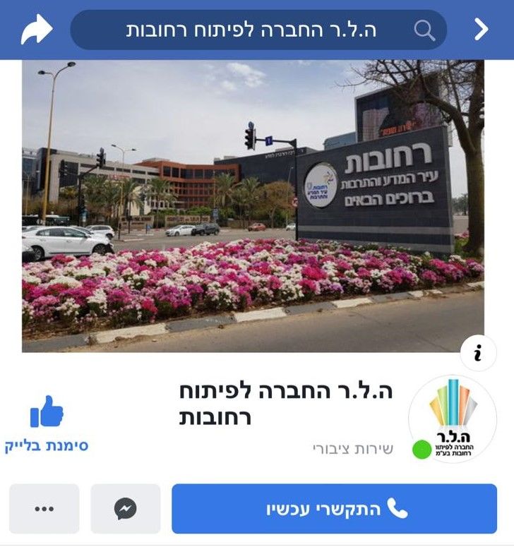 שומרים על הקשר לתושב! חברת ה.ל.ר-החברה לפיתוח רחובות ומינהלת אזורי התעסוקה רחובות השיקו עמודי פייסבוק חדשים לשמירת קשר עם התושבים ובעלי העסקים