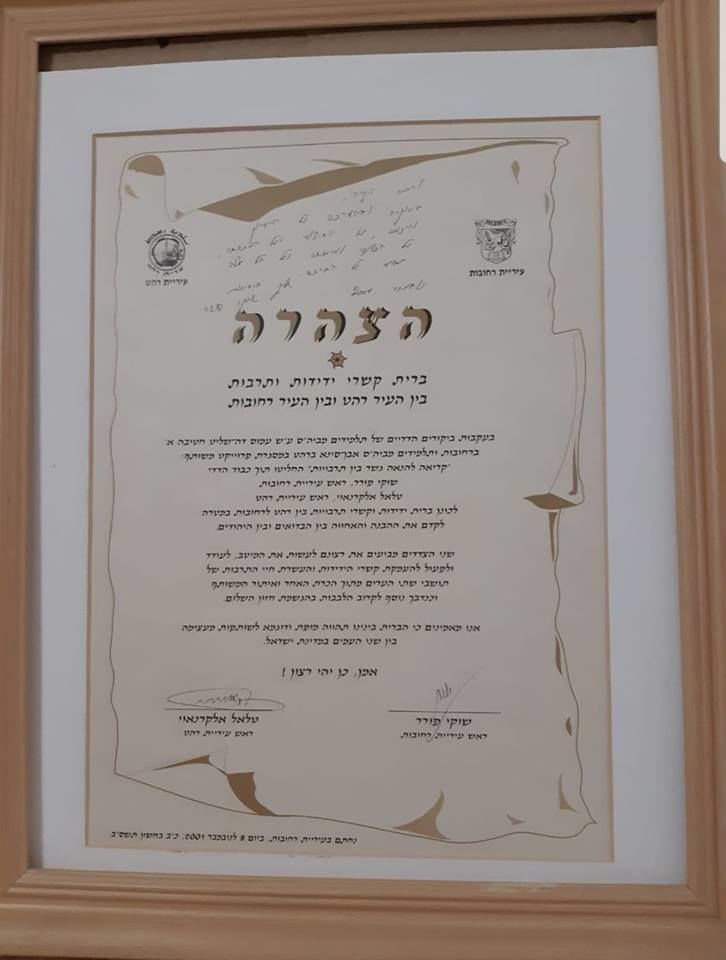 מפה, אנו יוצאים בקריאה לתושבי העיר להעצמה ולפיתוח של "ברית קשרי ידידות ותרבות בין העיר רהט ועירנו רחובות".