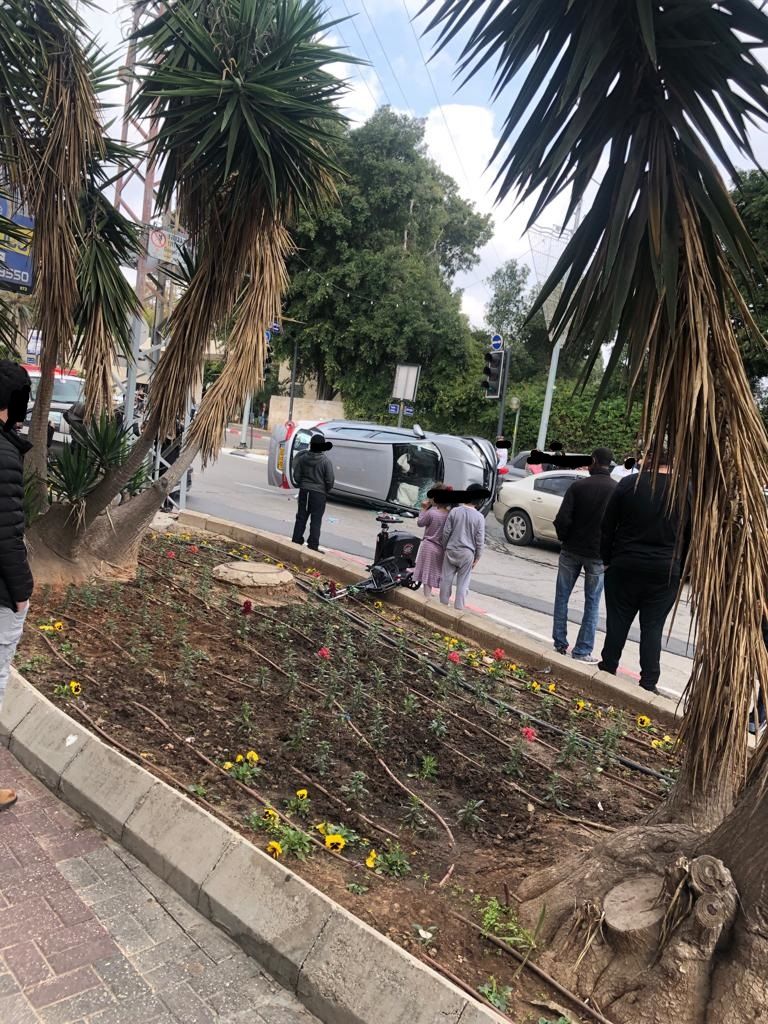 מבזק תאונה ברחובות: רכב התהפך, פצועים קל