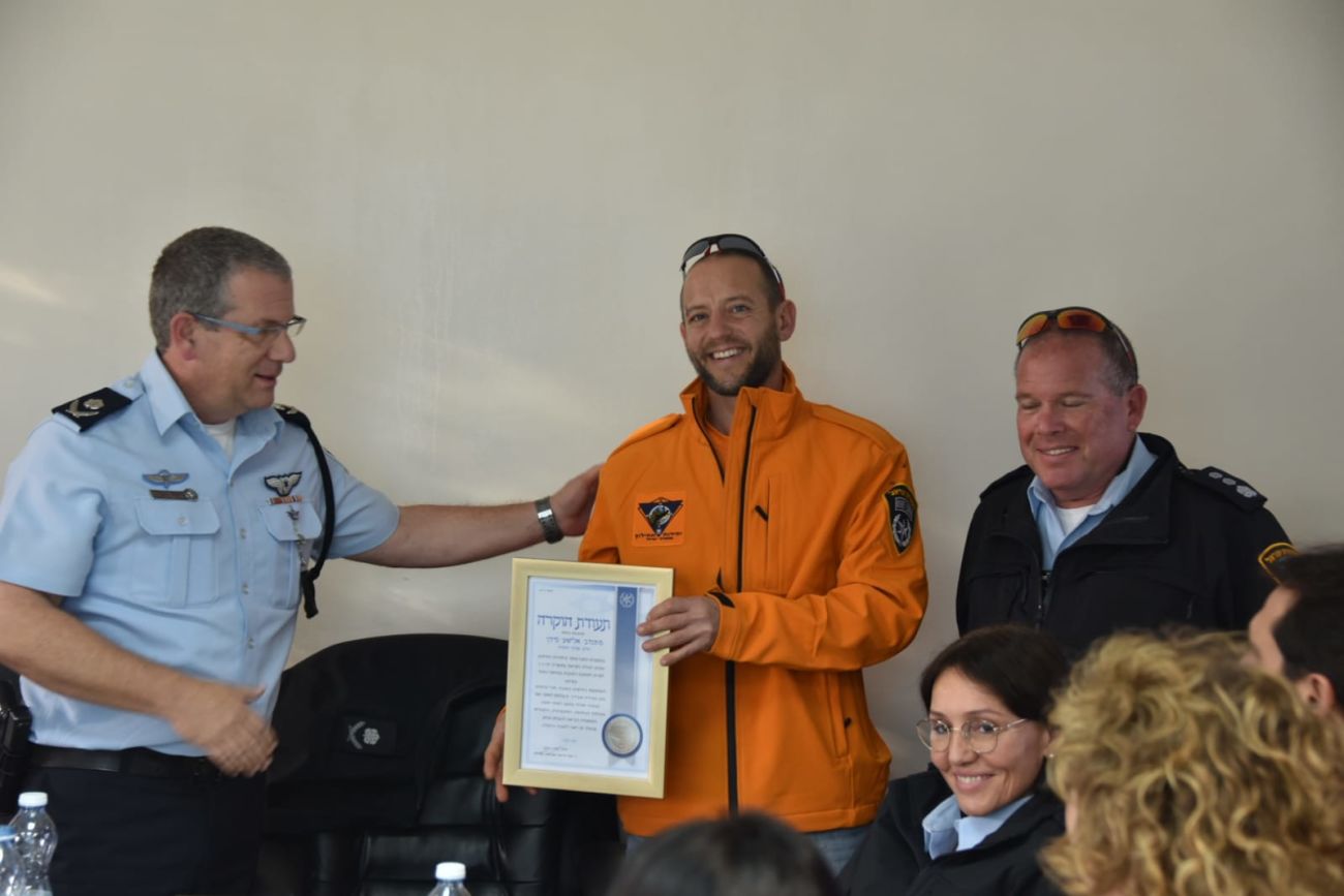 המשטרה העניקה תעודת הוקרה למתנדב אלישע מדן על מציאת הנעדר בן ה - 70 מרחובות אשר שכב בשדה פתוח במשך 3 לילות