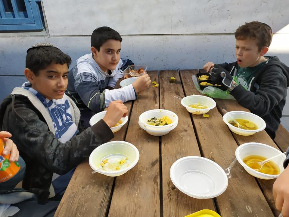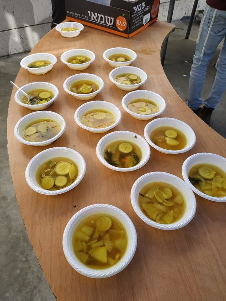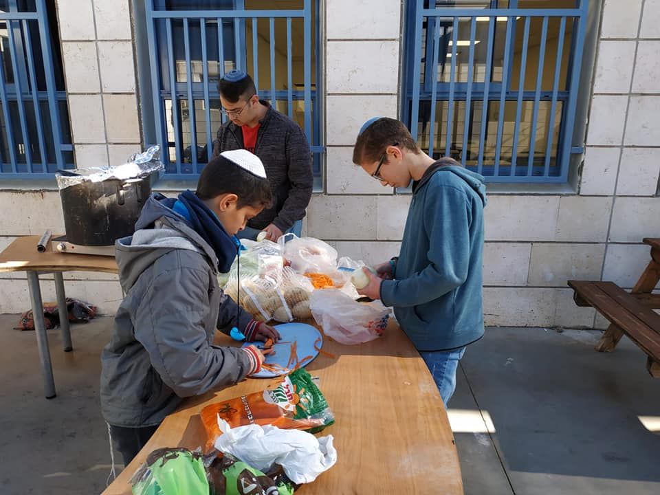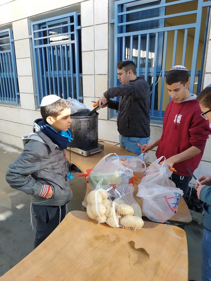 התלמידים הביאו לישיבה את כל המצרכים למרק הכולל ירקות והחלו לחתוך ולבשל את המרק שחולק לתלמידים בהנאה.