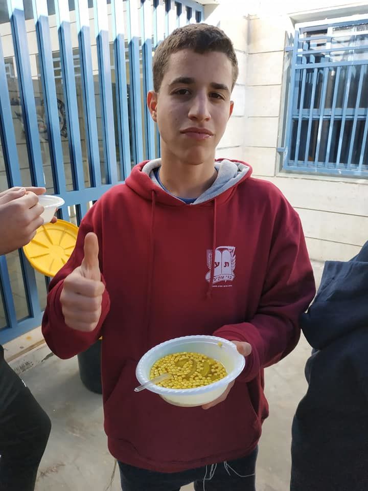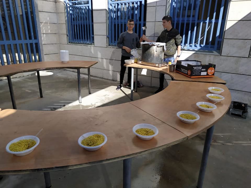 מועצת התלמידים בישיבת עמית עמיחי ברחובות פינקו את תלמידי הישיבה במרק חם מעשה ידיהם