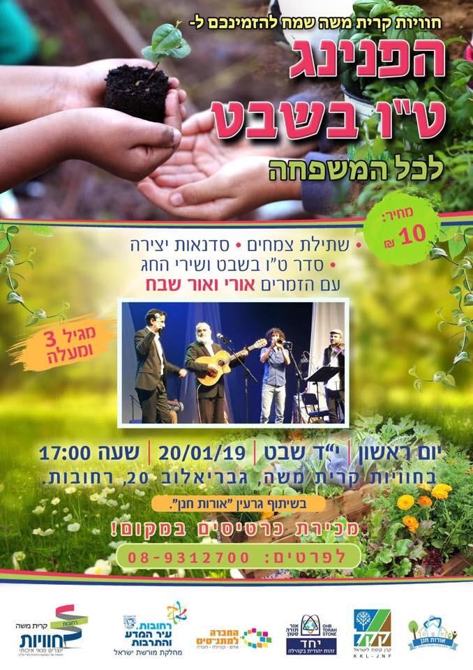 חגיגות ט"ו בשבט בחוויות קרית משה ובחוויות רחובות הצעירה! ביום ראשון בקרית משה נטיעות, מופע של אורי שבח וסדנת ראש דשא וביום שלישי חגיגת נטיעות וסדנאות בחוויות רחובות הצעירה