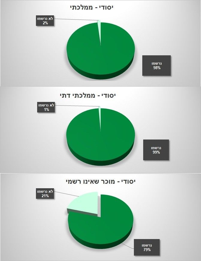בבתי הספר היסודיים הממלכתיים דתיים הרישום כמעט והסתיים: 99% מהילדים נרשמו.