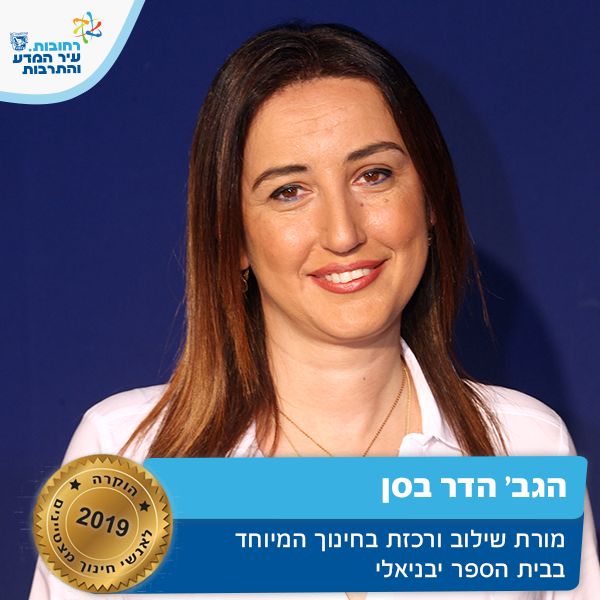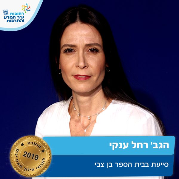 רחל עובדת בביה"ס בן צבי כסייעת כיתת חינוך מיוחד מזה 10 שנים. רחל הינה עובדת מקצועית, בעלת פתיחות לחדשנות ולמידה מתמדת. רחל תורמת לקידום מוכח של הישגיי התלמידים, משקיעה בהם רבות ובעיקר משמשת דוגמא ומודל באישיותה ובהתנהגותה הערכית. על זאת ועוד רחל מצטיינת חינוך תשע"ט.