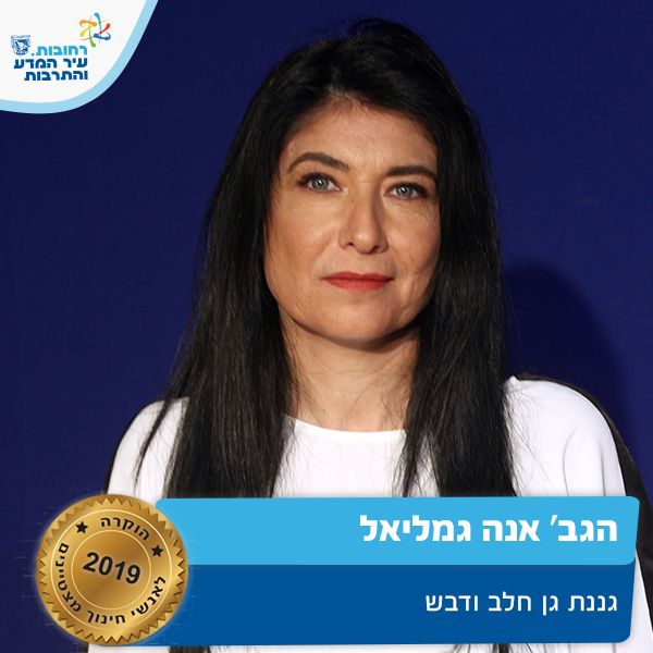 מנהלת גן חלב ודבש. אנה היא גננת שהיא מודל לחיקוי ביכולת לשתף קולגות, מקיימת חשיבה משותפת מתוך כבוד וצניעות, מקצועית וערכית מאוד, מקדמת אורח חיים בריא בגן, מלמדת את ילדי הגן בדרכים מגוונות: בעל פה, במשחקים ובכתב, מפתחת רגישות לאיכות הסביבה, מתייחסת ברגישות לצרכים השונים של הילדים ומעצימה כל אחד על פי חזקותיו. על זאת ועוד אנה מצטיינת חינוך תשע"ט.