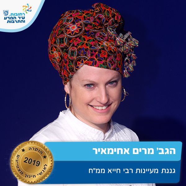 גננת מעיינות רבי חייא. מרים חלוצת שיטת למידה ייחודית בעיר, מנהלת גן ממלכתי חרדי, הגן הראשון בעיר שניפתח במגמה זו. תרומתה ייחודית ומשמעותית לפיתוח תכניות הלידה ולהעשרת הצוות המקצועי של אשכול הגנים. מרים פועלת מתוך מסירות אחריות ותחושת שליחות ובכך מצליחה ליצור חיבורים בין ההורים, הילדים וצוותי ההוראה. על זאת ועוד מרים מצטיינת חינוך תשע"ט.