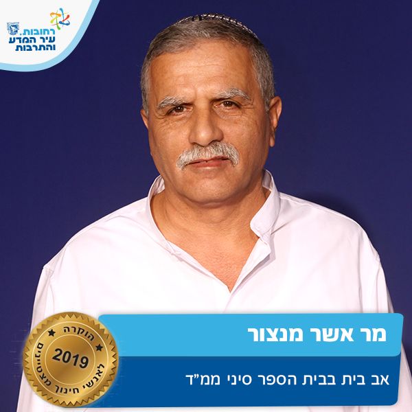 אשר מועסק כאב בית בבית ספר "סיני" החל משנת 2010. אשר הינו ה"אבא" של התלמידים בביה"ס, דואג להם ומסייע להם בכל מה שבידו. מקבלם בחום ואהבה, מעודד, תומך ומשרה אווירת רוגע ושלווה. אשר מפגין רמה גבוהה של מחויבות לארגון ונכונות לעבודת צוות. אשר בונה תכניות ייחודיות לתלמידים בעלי צרכים מיוחדים כמו למשל גינה טיפולית, מסייע לתלמידי כיתה א' בהתאקלמות מהירה, מקדם אחריות אישית בקרב כלל התלמידים תוך שימת דגש על התחשבות בסביבה. על זאת ועוד אשר מצטיין חינוך תשע"ט.