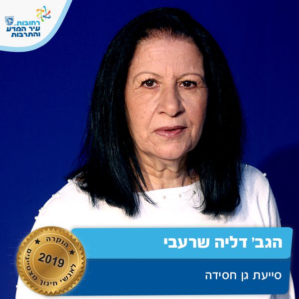 סייעת אם בגן חסידה ובגנים מעל כ- 30 שנה בעלת ניסיון רב בתחום וידע מקצועי. דליה אוהבת ומטפלת בילדים מידי יום ביומו בהתמדה, אהבה ונתינה אין סופית. מקבלת את פני הילדים וההורים באהבה, שמחה, סבלנות והומור. דליה מאוד מסורה לעבודתה, עם המון מרץ ושמחה בעיניים. דליה יודעת למצוא את האיזון העדין בין גבולות ברורים לבין הכלה והקשבה לצרכי כל ילד. על זאת ועוד דליה מצטיינת חינוך תשע"ט.
