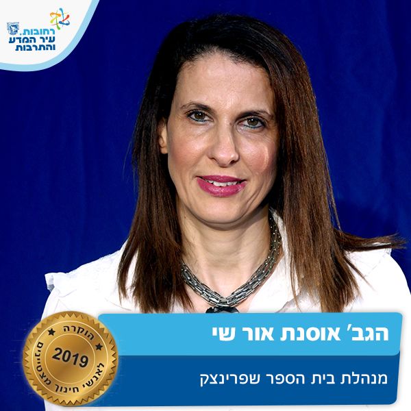 מנהלת ביה"ס שפרינצק מזה כ - 8 שנים, בעלת ניסיון עשיר בתחום החינוך. מסירותה לתפקיד הובילה לשינוי והפכה את שפרינצק למעין חממת חדשנות לרעיונות חינוכיים. אוסנת מכירה כל תלמיד ותלמיד באופן אישי ומשקיעה תשומת לב אישית ואף הביאה לשיפור משמעותי באקלים החינוכי בבית הספר על פי נתוני המיצב. על זאת ועוד אסנת מצטיינת חינוך תשע"ט.