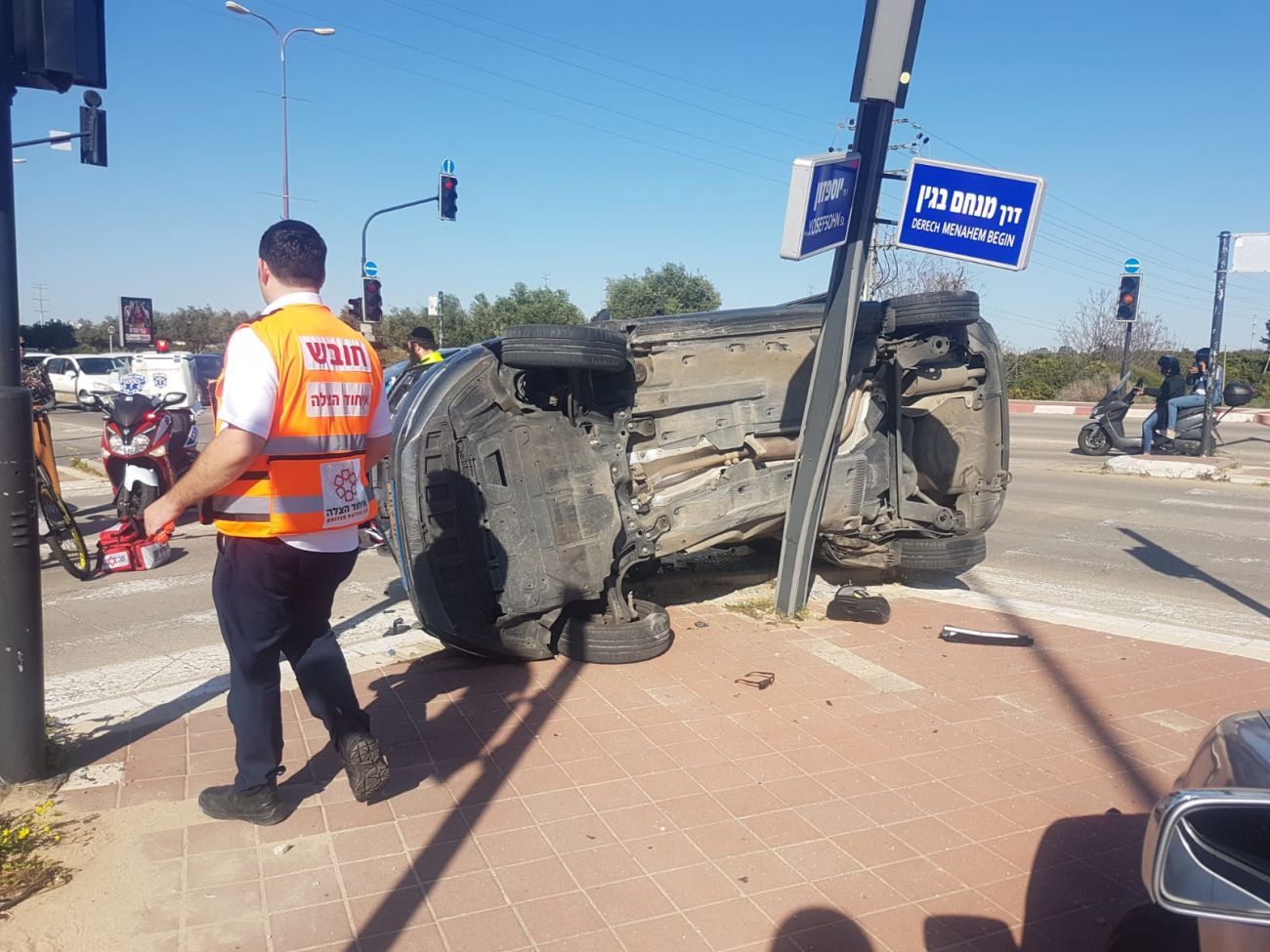 מבזק וואטסאפ אדום ברחובות! רכב התהפך בעוקף