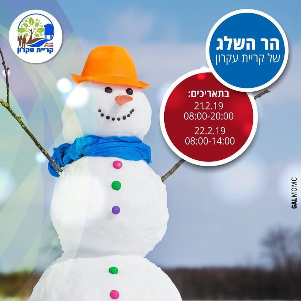 אתר החרמון מגיע לקריית עקרון! המועצה המקומית קרית עקרון מזמינה את התושבים ליהנות במשך יומיים מחגיגת חורף ברחבת המועצה שתהפוך ללבנה משלג שיגיע במיוחד מאתר החרמון.
