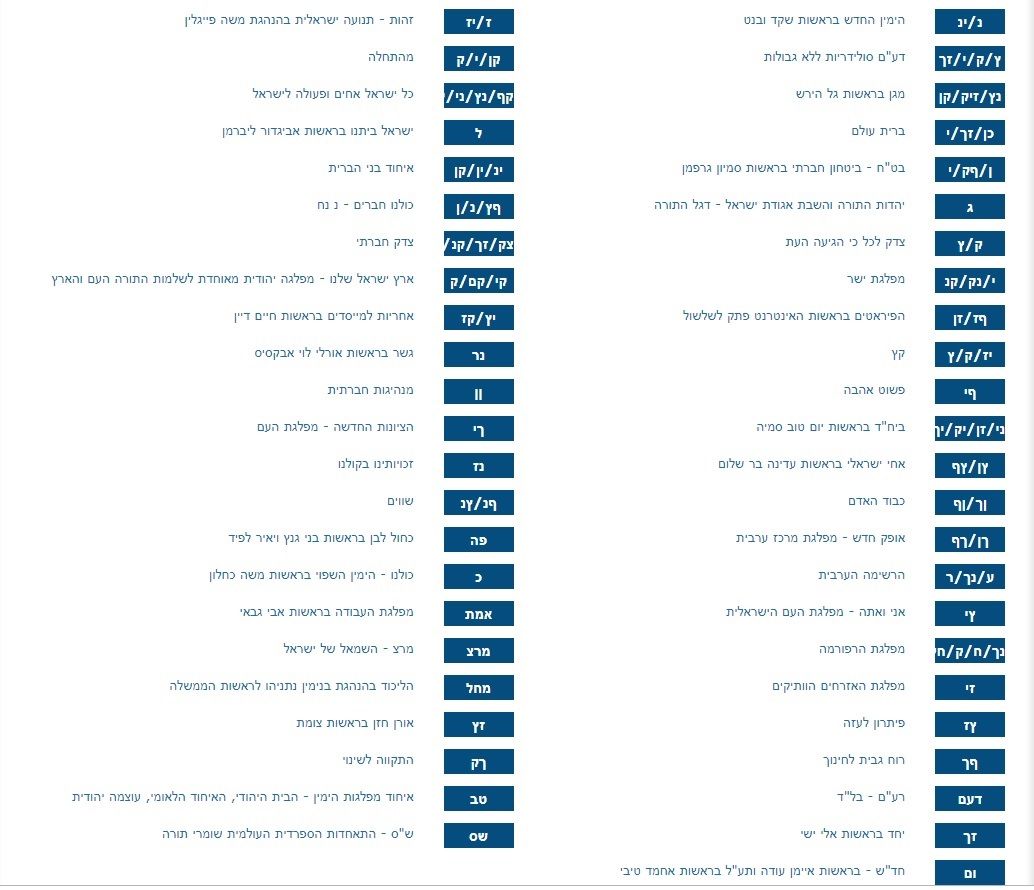 רשימות מועמדים, כינויים ואותיות שהוגשו לוועדת הבחירות המרכזית לכנסת ה-21