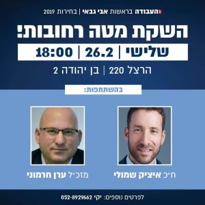 ביום שלישי 26.2 ח"כ איציק שמולי יגיע לעיר רחובות לטקס השקת מטה הבחירות של מפלגת העבודה ברחוב הרצל בעיר