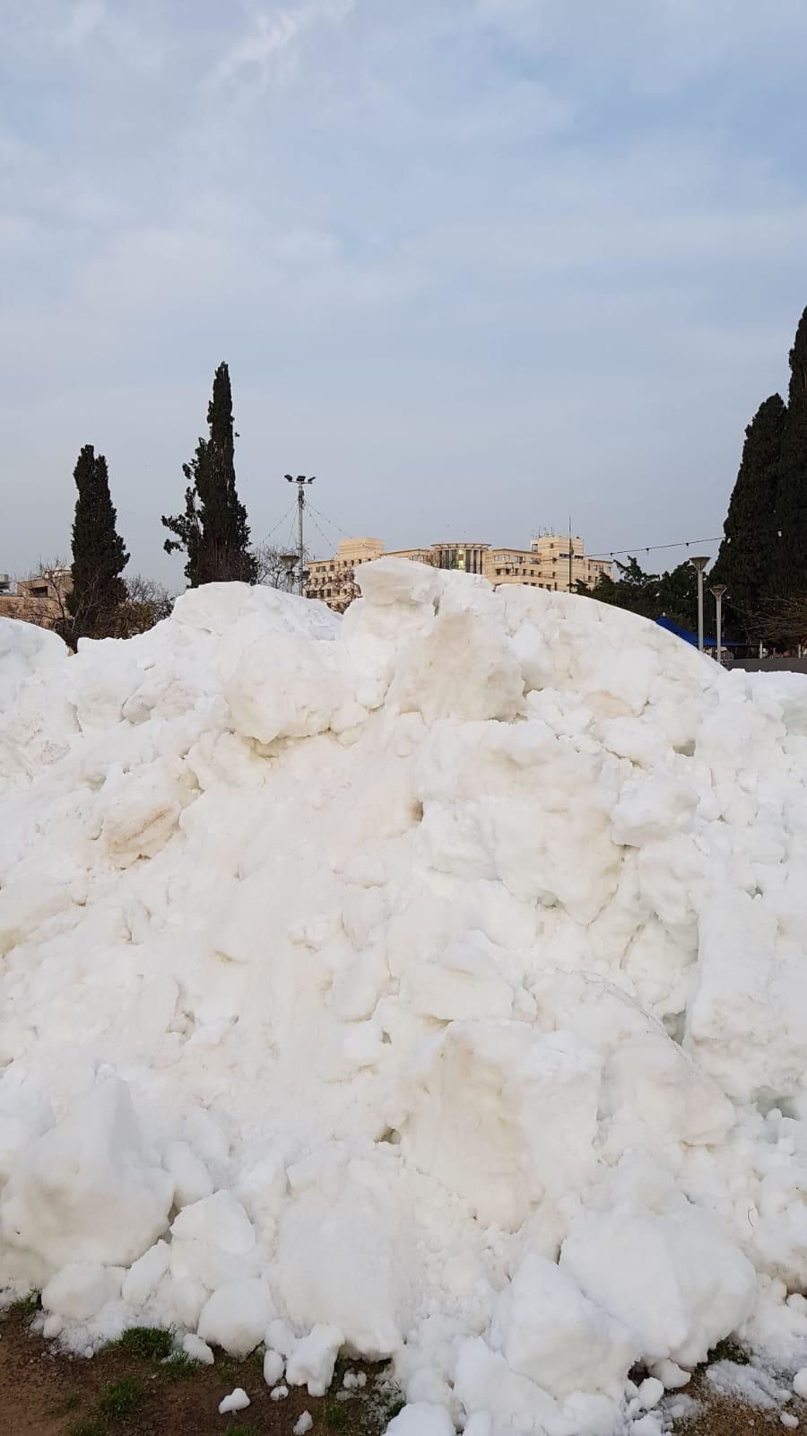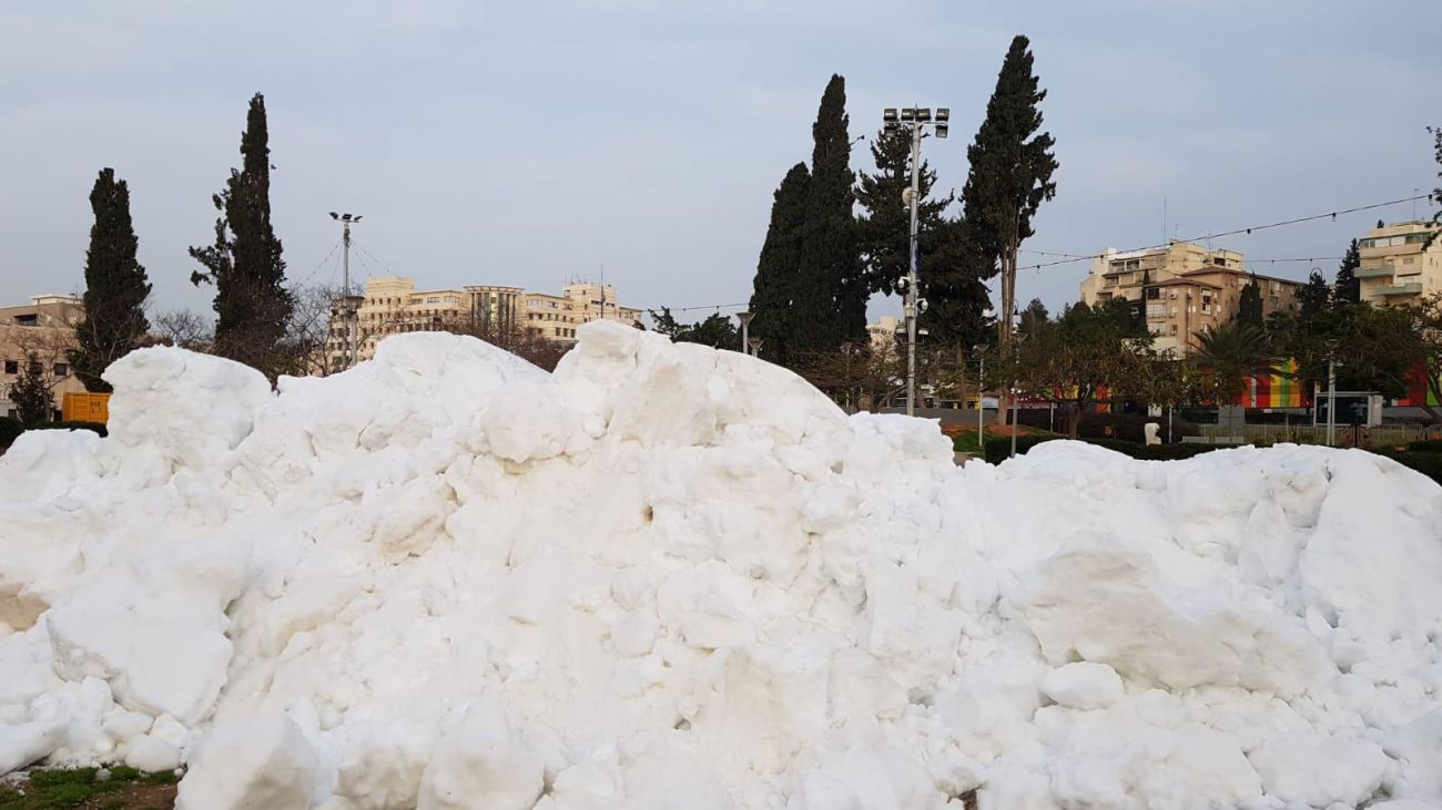 6 משאיות שלג הגיעו בשעות הבוקר המוקדמות לגן המייסדים ברחובות