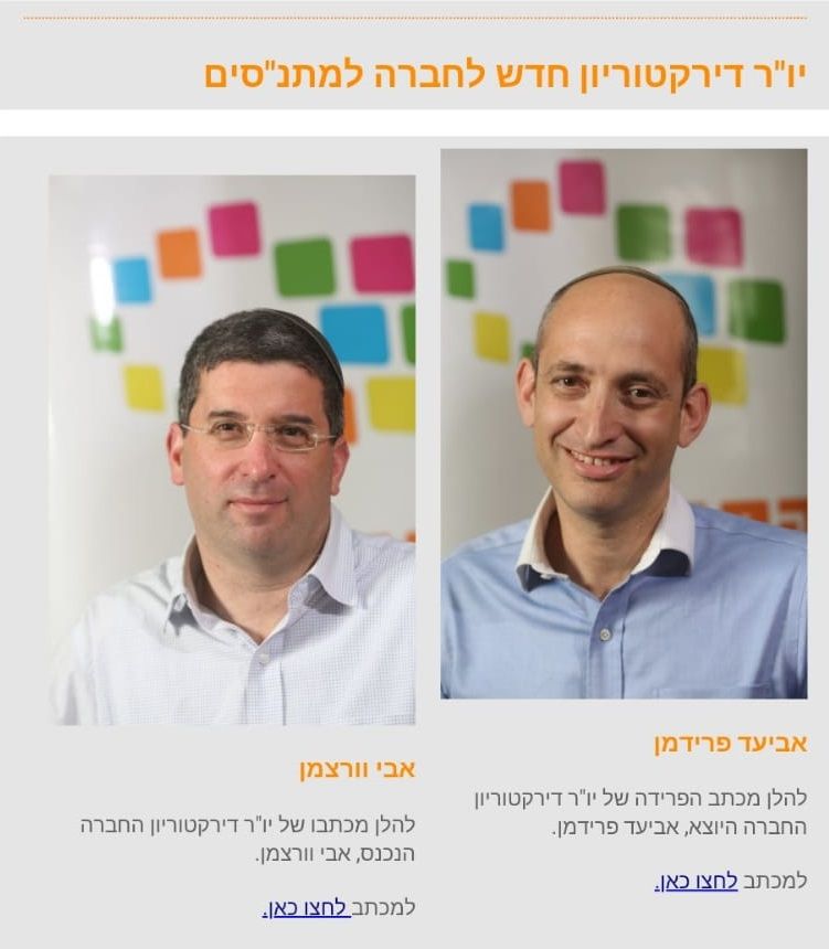 הפתעה ליו"ר דירקטוריון חוויות אמיתי כהן ובשורה לרשת חוויות! סגן שר החינוך לשעבר אבי וורצמן ידידו האישי של אמיתי כהן אשר עשה לא מעט שבתות ברחובות מונה ליו"ר רשת המתנ"סים הארצי וכעת יש סיכוי לפתרון המשבר בין חוויות לרשת המתנ"סים