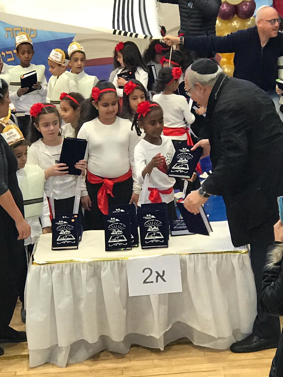 ראש העיר רחמים מלול וממלא מקומו זהר בלום השתתפו גם הם , והתכבדו בחלוקת הסידורים לתלמידים.