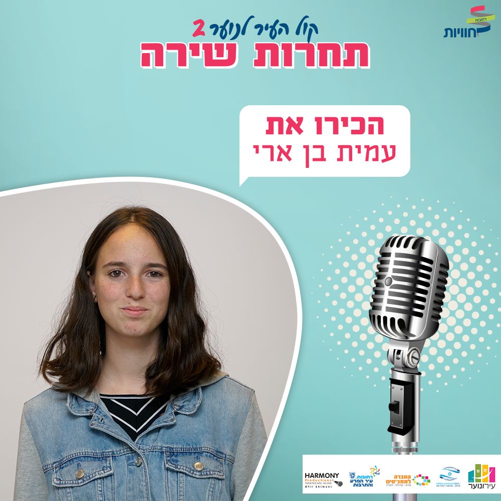 בת 14.5, כיתה ט', התחילה לשיר בכיתה ו' וכבר 3 שנים שהיא בפיתוח קול. שאיפות לעתיד "להיות זמרת מוכרת ושחקית דרמה".