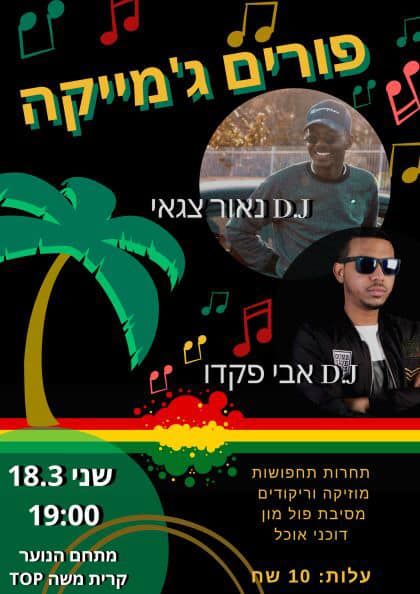 יום שני 18.3 שעה 19:30 מתחם הנוער טופ קריית משה