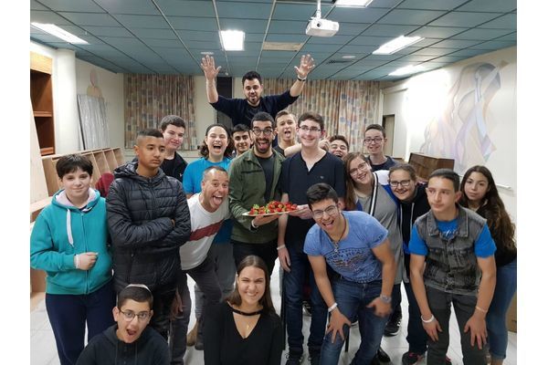 בני הנוער ברחובות הכינו הפתעה לזמר חנן בן ארי שהגיע לכיתת אמן בעירונוער- מגש מלא תותים אותו העניקו לו בסיום המפגש
