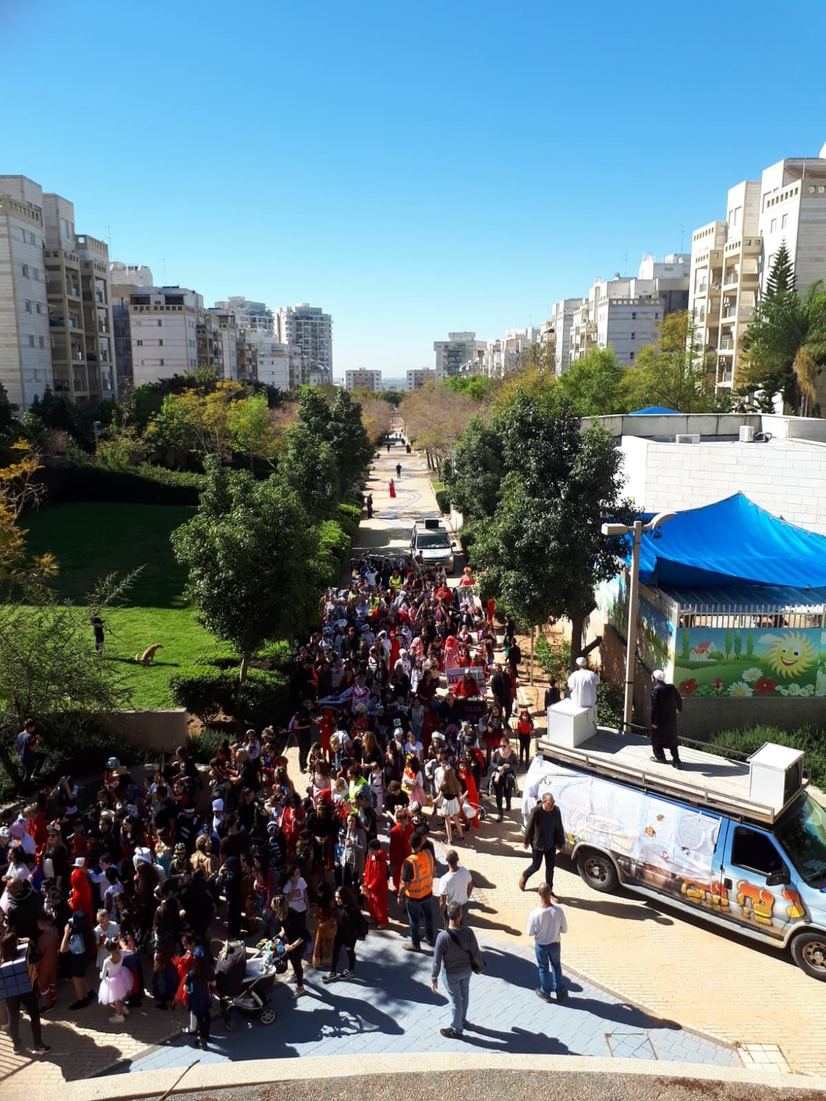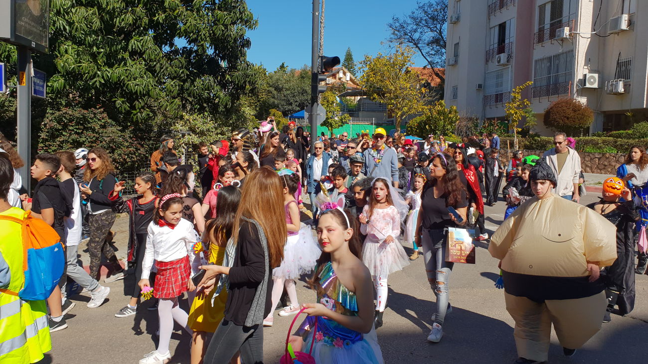 את חגיגות פורים פותחים בעדלאידע המסורתית של תלמידי בית ספר שפריצק אותה הוביל רכבו של חבר המועצה ותושב השכונה אבי קינד