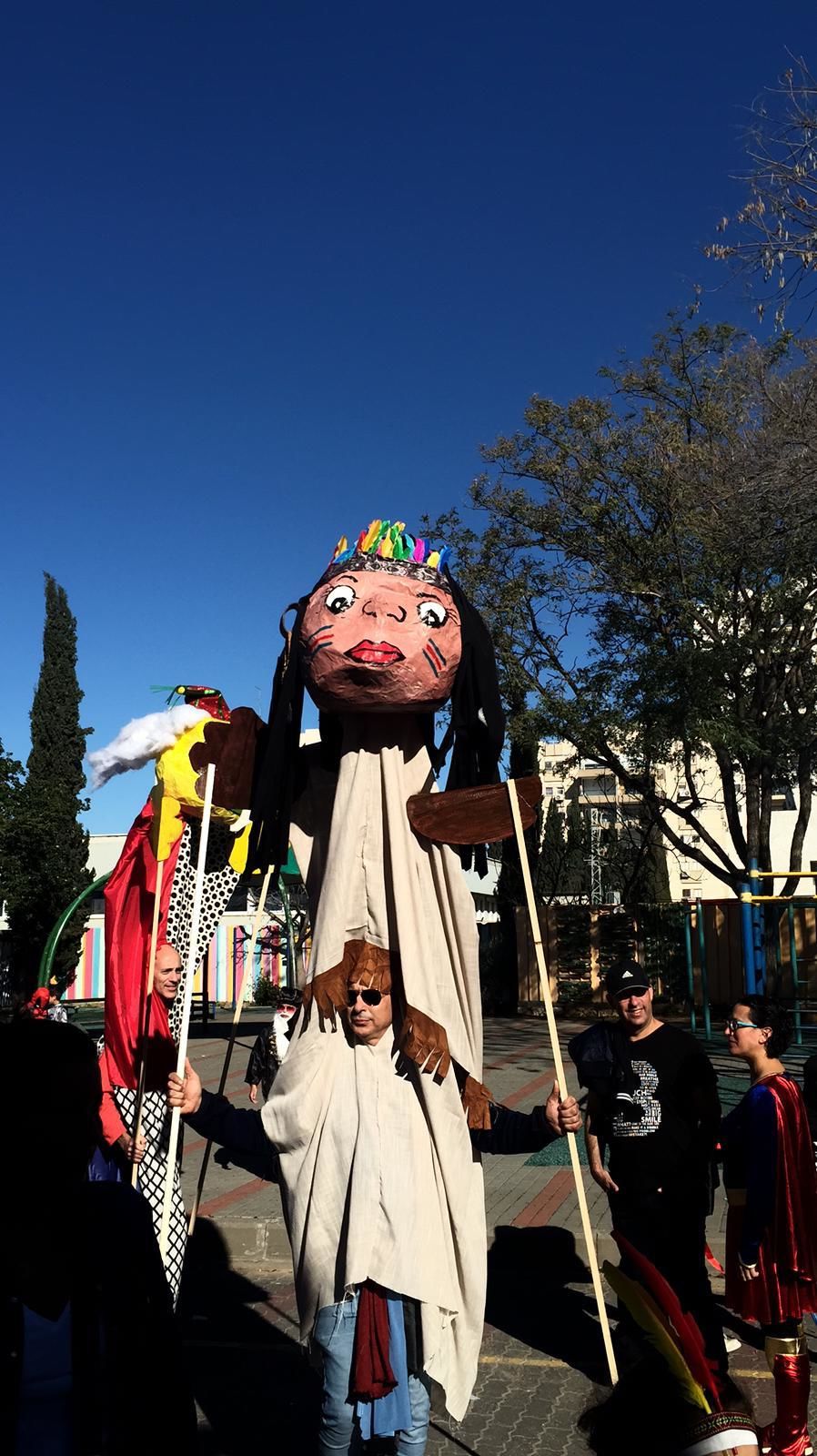 עירית דוידוביץ' מנהלת אשכול פיס בקציר ותלמידיה התחפשו לבית הנייר