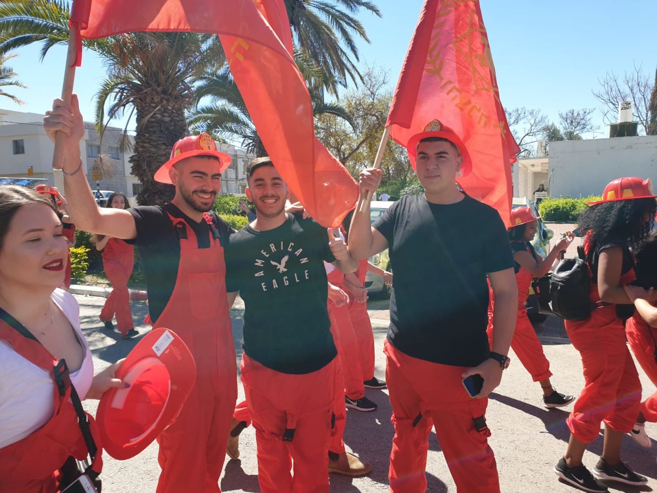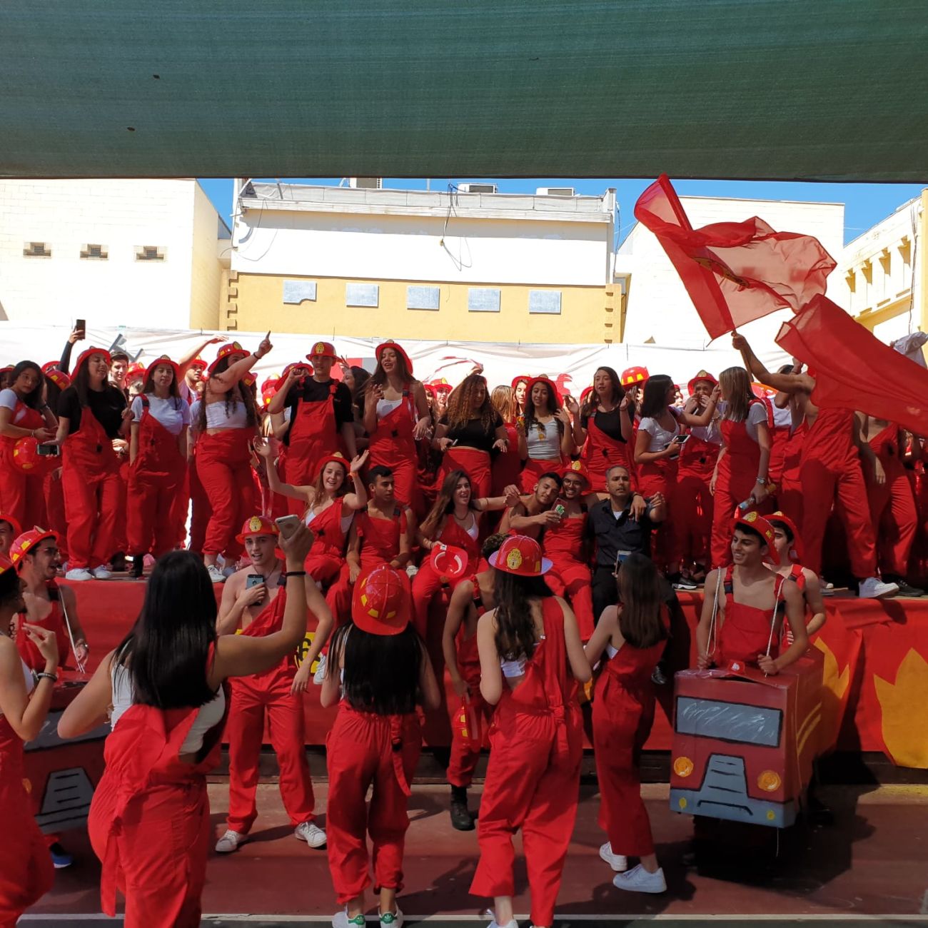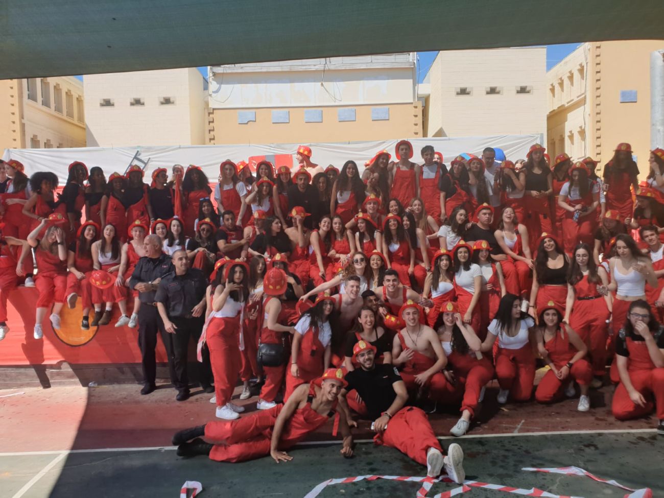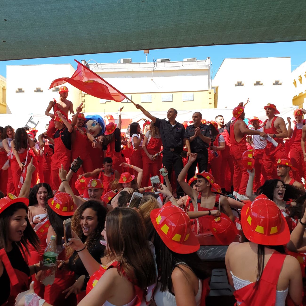 כל שכבה י"ב בתיכון קציר התחפשה למכבי אש בשיתוף תחנת כיבוי אש רחובות