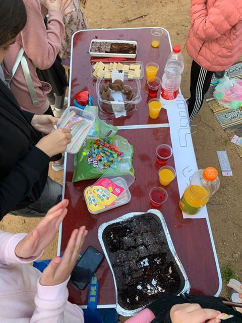 בדוכן ניתן לרכוש בשקל כוסות שתיה, עוגות, קליעת צמות ועוד.