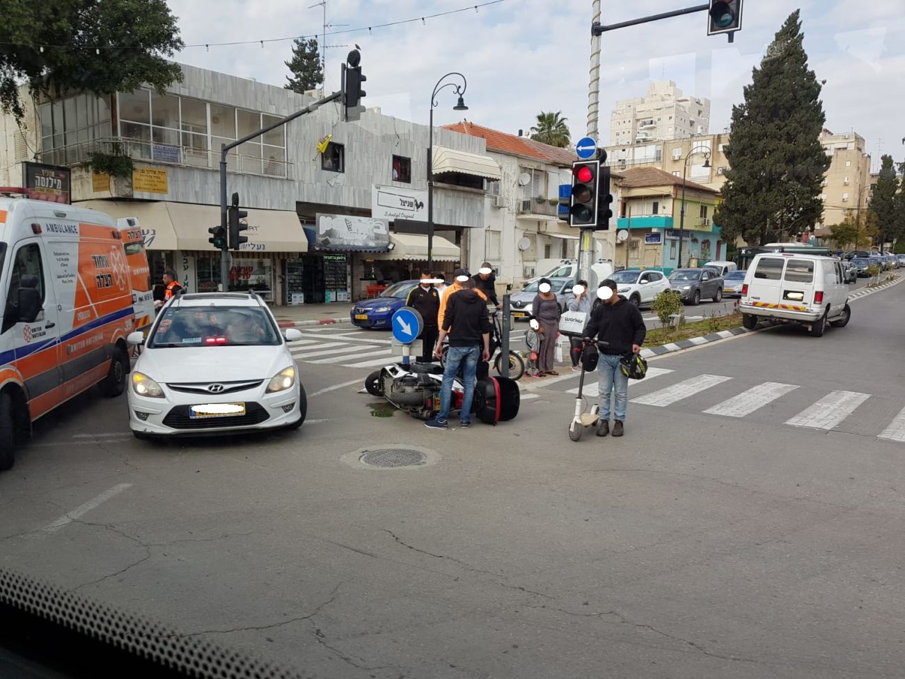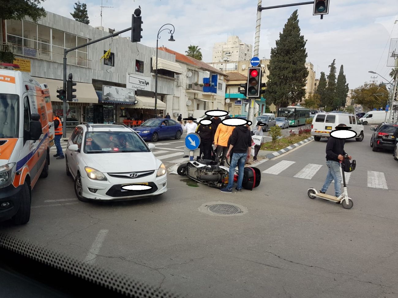 לפני זמן קצר התקבלה במוקד איחוד הצלה קריאה על תאונת דרכים עם מעורבות קטנוע ורכב פרטי ברחוב בנימין פינת הרצל ברחובות.