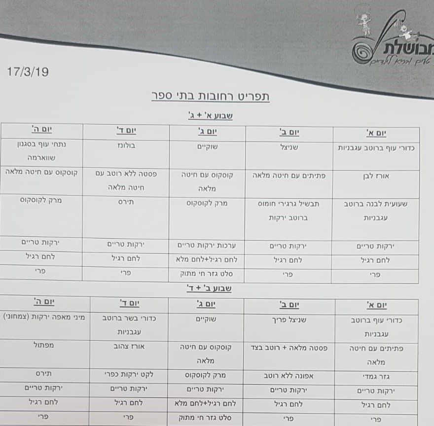 פורסם התפריט החדש של צהרוני בתי הספר ברחובות שהוחלף בעקבות תלונות ההורים... התפריט בכתבה