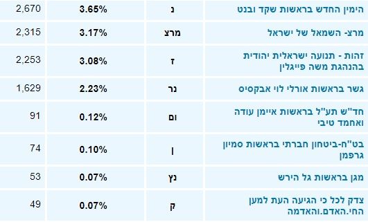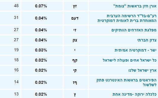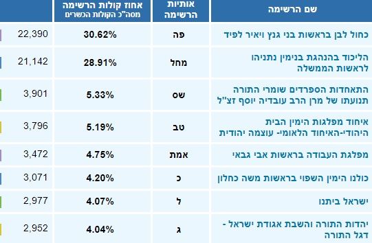 התוצאה עדיין לא סופית. ביום חמישי תסתיים ספירת המעטפות הכפולות (חיילים, שוטרים, חולים, חו"ל, עובדי קלפיות ועוד) הערכה של מעל 250 אלף קולות מכל הארץ. עם פרסום תוצאות המעטפות הכפולות נעדכן הידיעה