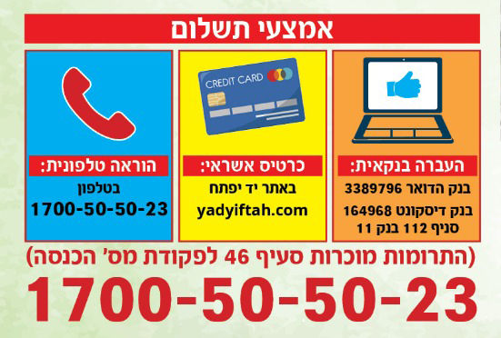 ניתן לתרום גם דרך אתר האינטרנט של העמותה או בהעברה בנקאית