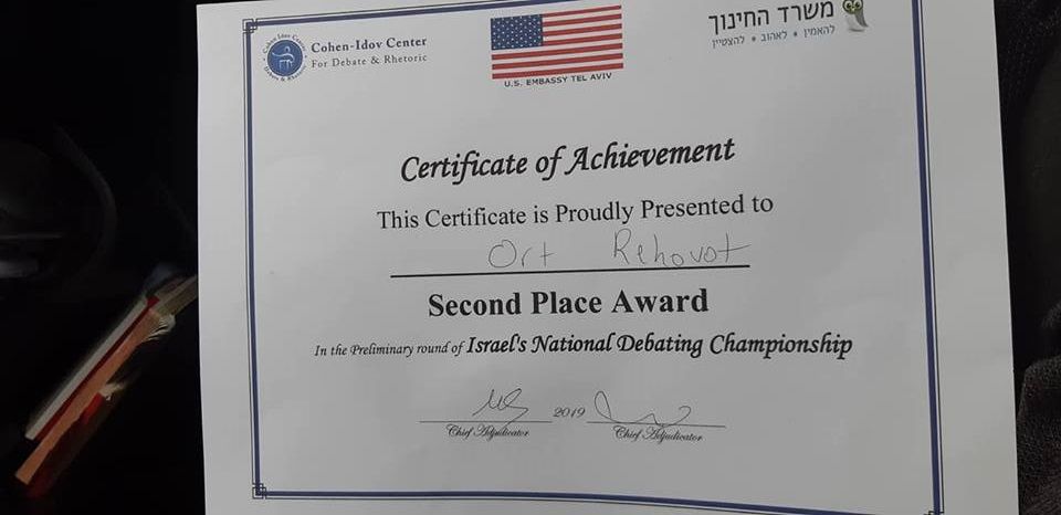 עוד הישג לתלמידי רחובות! נבחרת תלמידי אורט רחובות זכו במקום השני בתחרות הדיבייט באנגלית