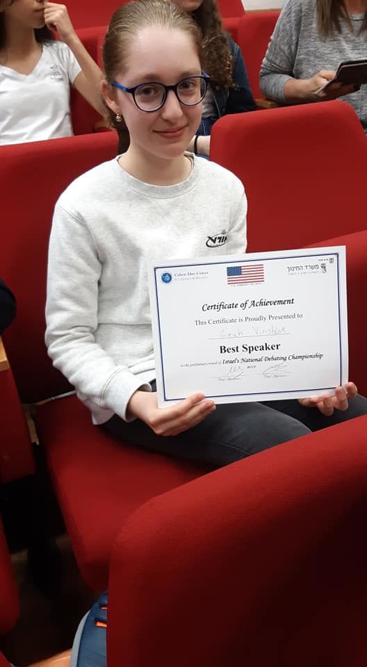 בנוסף התלמידה לאה וינשטוק זכתה בתואר הדוברת הטובה ביותר בכל התחרות .