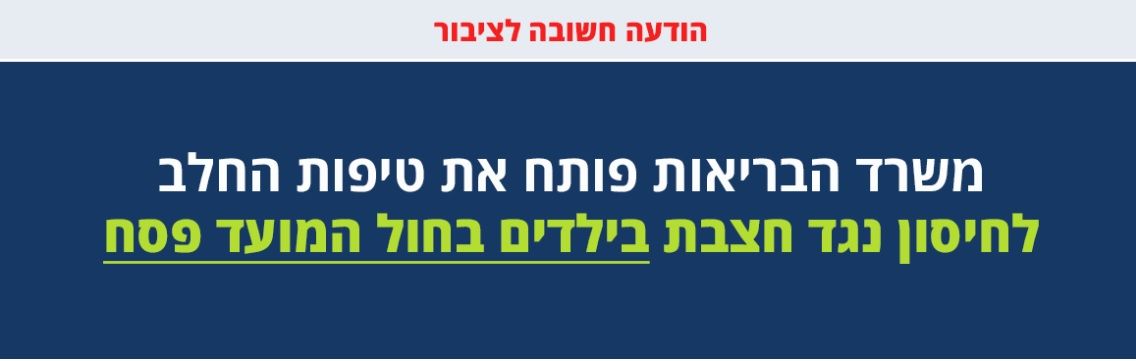 בעקבות המשך התפרצות חצבת בעולם ובישראל משרד הבריאות פותח את טיפות החלב לחיסון נגד חצבת בילדים, בחול המועד פסח.