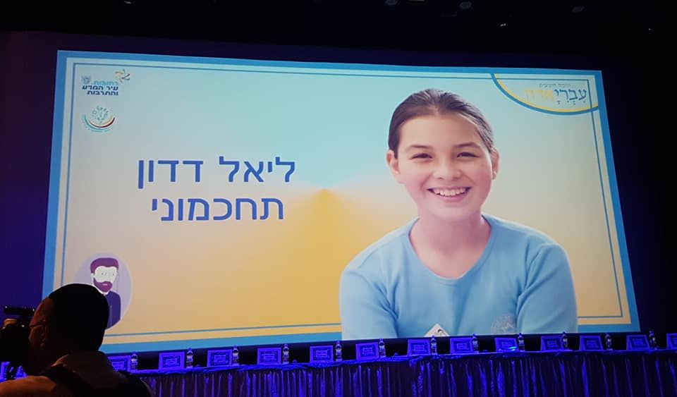 ליאל דדון מבית הספר תחכמוני זכתה במקום הראשון בתחרות העבריאדה של רחובות