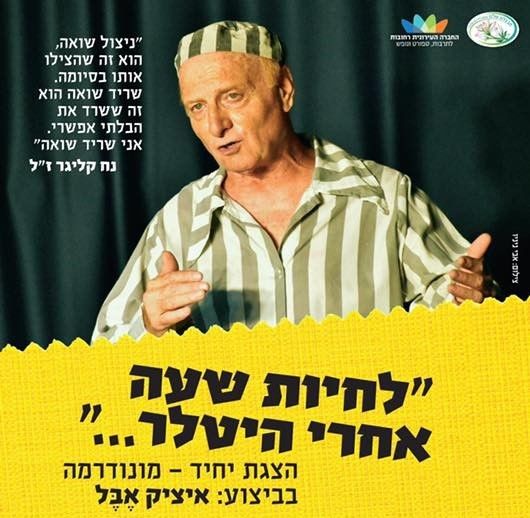 לרגל יום השואה שיצוין השבוע תוצג בבית חבצלת ההצגה "לחיות שעה אחרי היטלר..." הצגת יחיד של איציק אבל.