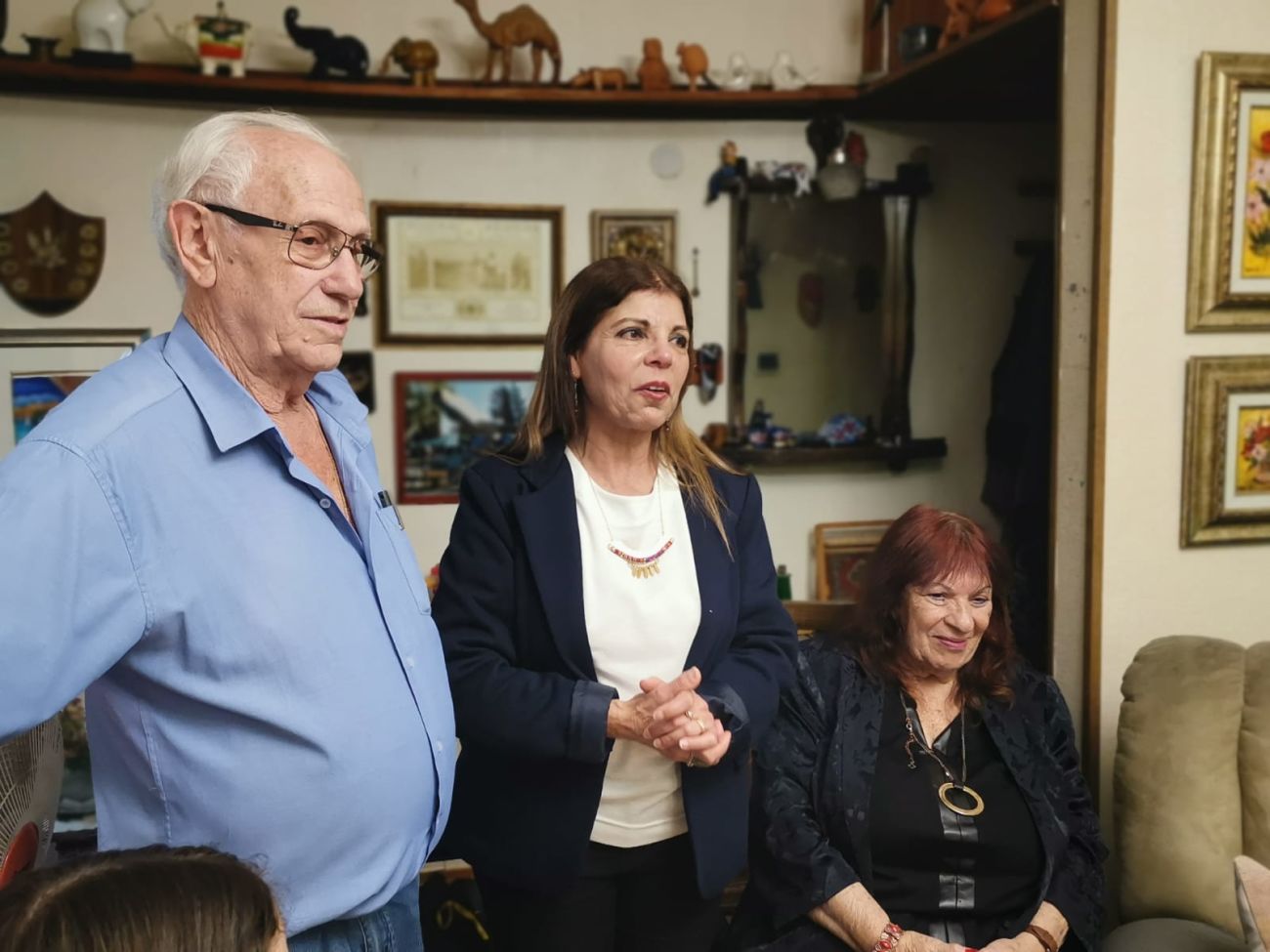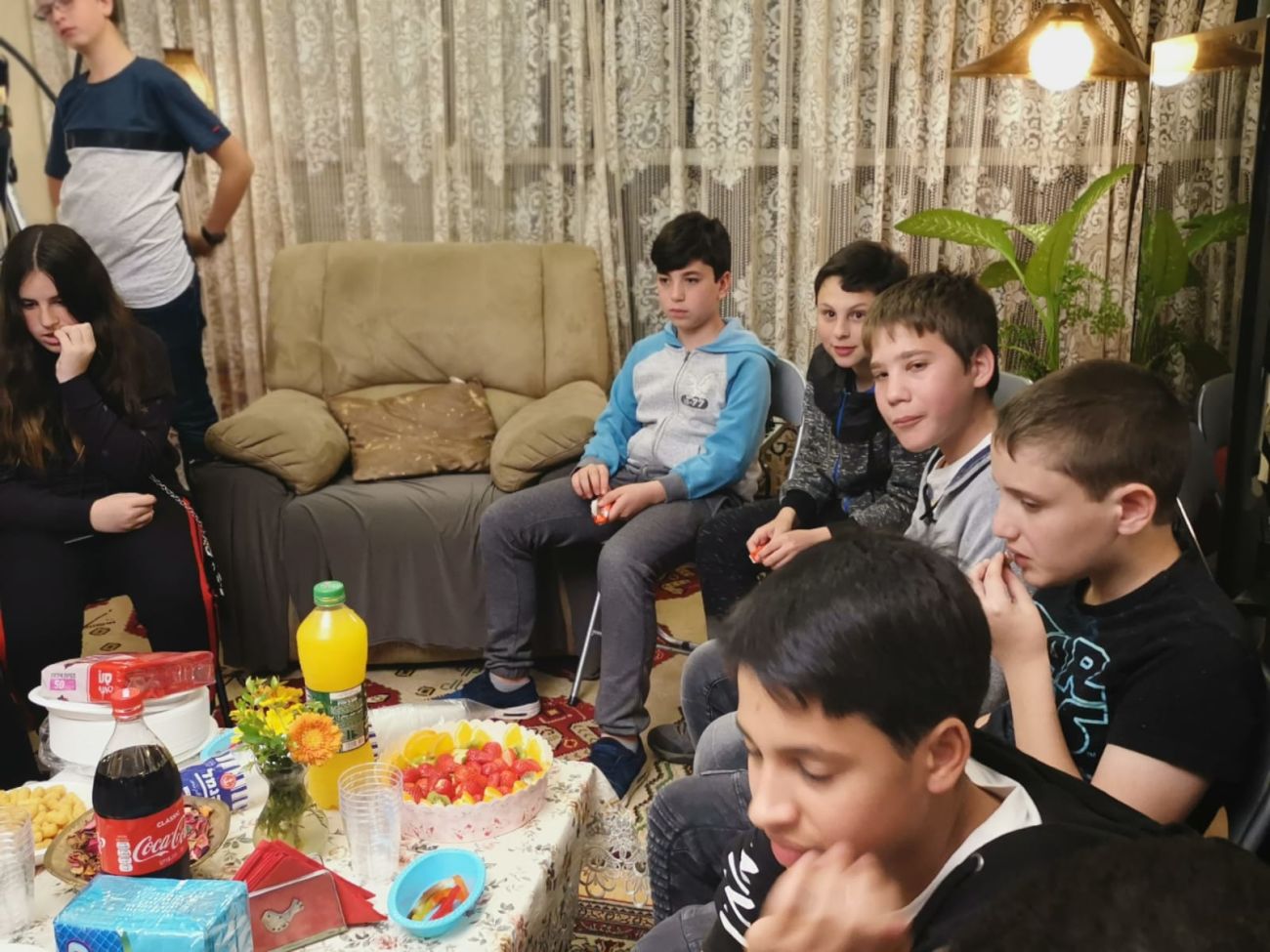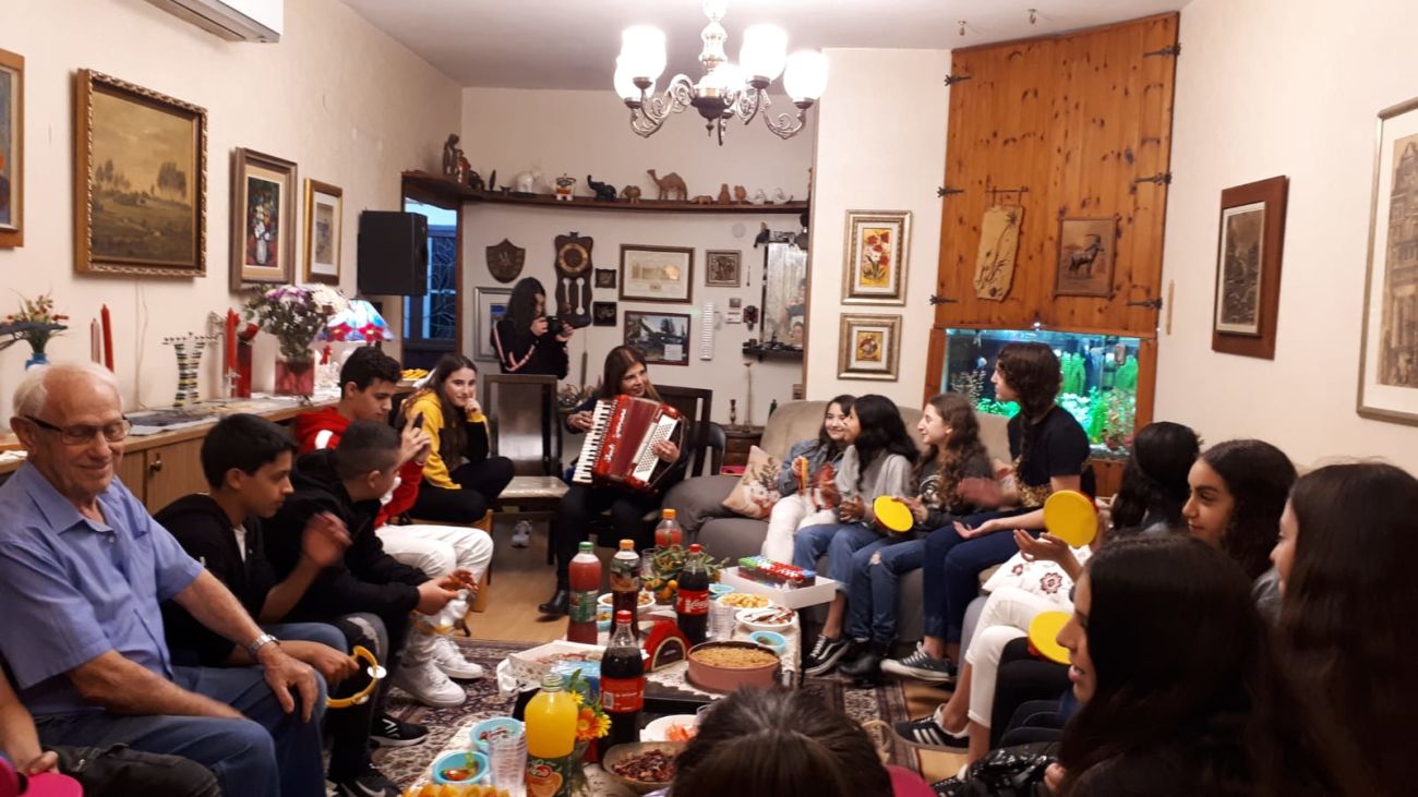 חנה הגיעה לביתו של חיים יחד עם 20 תלמידי כיתות ז עם כיבוד ועוגות.